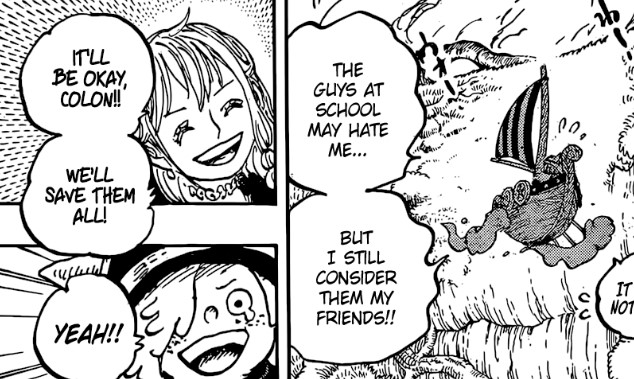 Bahkan di chapter 1135, Colon berani menyerang Luffy — tindakan yang membuatnya dibenci oleh banyak anak di Sekolah Walrus, tempat ia belajar.