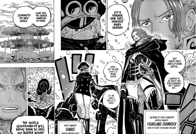 Salah satu momen paling menarik di bab ini adalah kemunculan Figarland Shamrock, yang hampir dipastikan sebagai saudara kandung Shanks. Teori tentang keluarga Figarland akhirnya mendapatkan konfirmasi kuat.