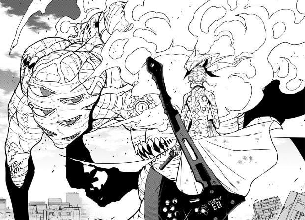 Chapter ini dibuka dengan Kafka yang sempat berhasil menghantam Meireki dengan kekuatan dahsyat, memicu sorakan dari markas Tim Pelindung. Namun bukannya hancur, Meireki justru bangkit kembali dengan ukuran yang lebih besar, disertai ledakan energi dahsyat yang menghancurkan gedung tempat Kafka berdiri.