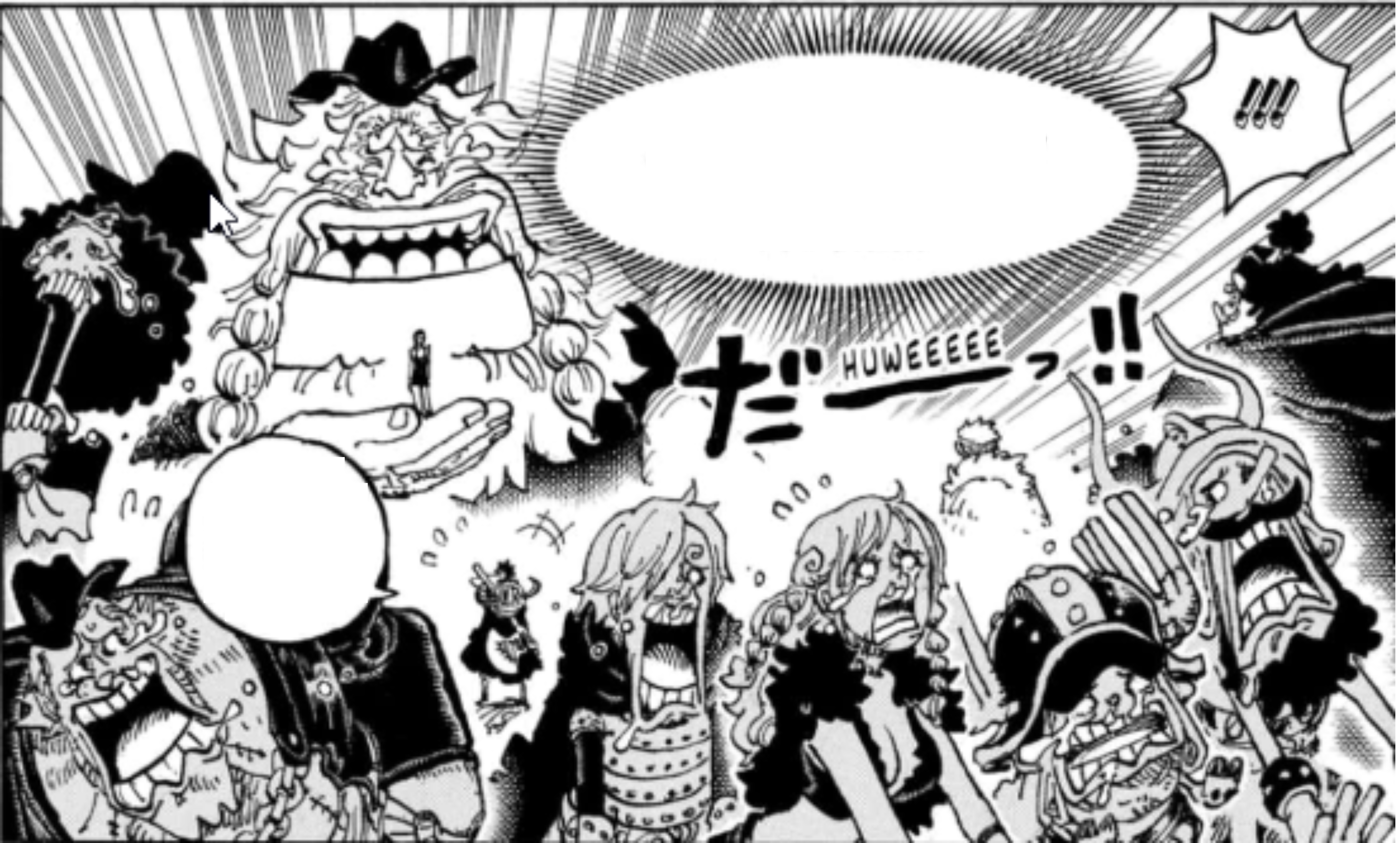 Bagian paling mengejutkan dari bab ini adalah munculnya sosok yang mirip Shanks di Elbaf. Sosok ini muncul melalui pentacle—simbol misterius yang sebelumnya digunakan oleh Gorosei. Namun, karena wajah kirinya belum terlihat jelas, identitasnya masih menjadi misteri.