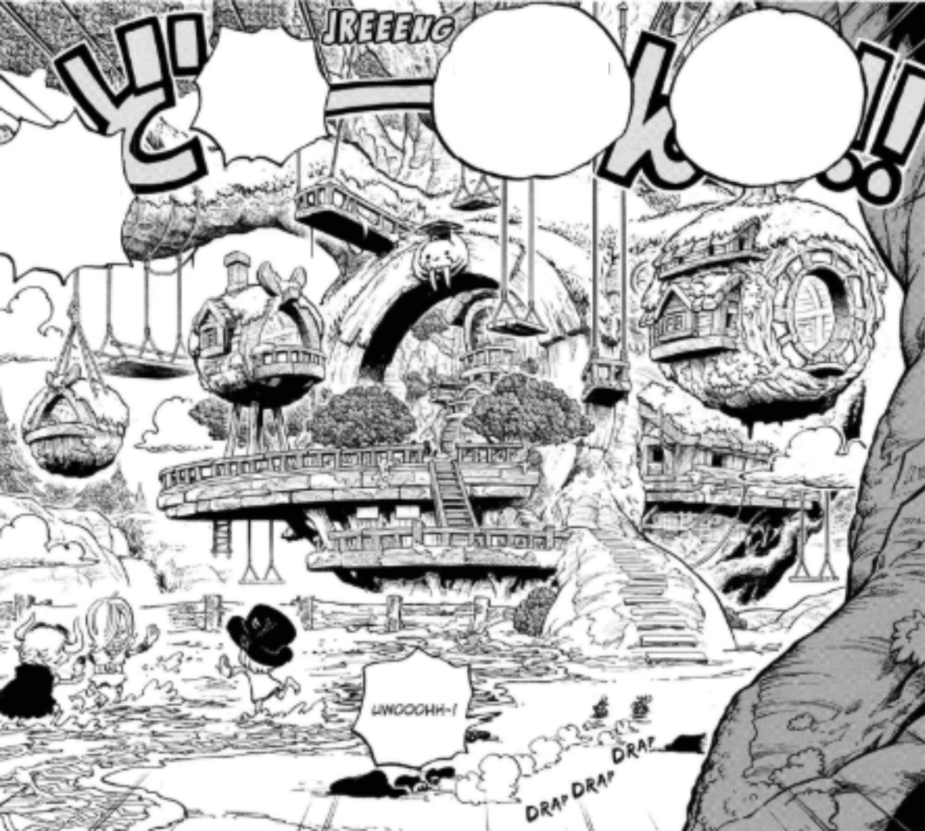Sementara sebagian kru seperti Luffy dan Usopp bersenang-senang, kru lainnya fokus pada hal berbeda. Franky dan Jinbe tertarik dengan pohon Adam, pohon raksasa yang dianggap sebagai bahan pembuatan kapal dan senjata yang hebat. Franky bahkan membayangkan teknologi baru untuk memperbarui Thousand Sunny.