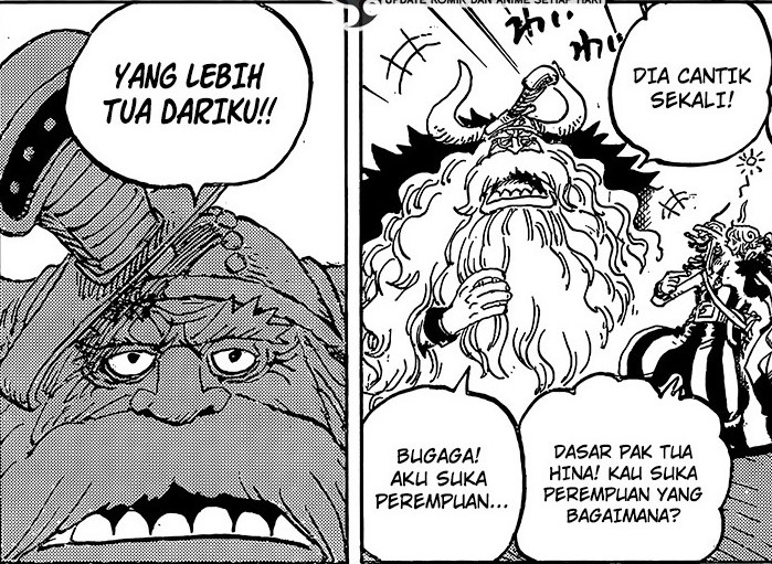 Salah satu bagian menarik dari One Piece 1141 adalah pernyataan Jarul yang mengungkap bahwa ia lebih menyukai wanita yang lebih tua. Hal ini menjadi perhatian karena Oda bahkan menjadikannya sebagai judul chapter.