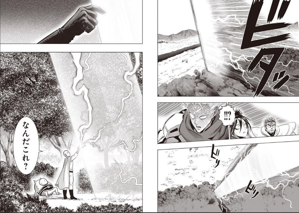 Ternyata, Saitama muncul kembali dan dengan mudah menghentikan tebasan itu, menunjukkan kekuatannya yang luar biasa. Bahkan, ketika Empty Void mencoba menyerang dengan satu pedang lagi, Saitama kembali menangkap pedang tersebut, memaksa sang ninja kembali ke dunia manusia.